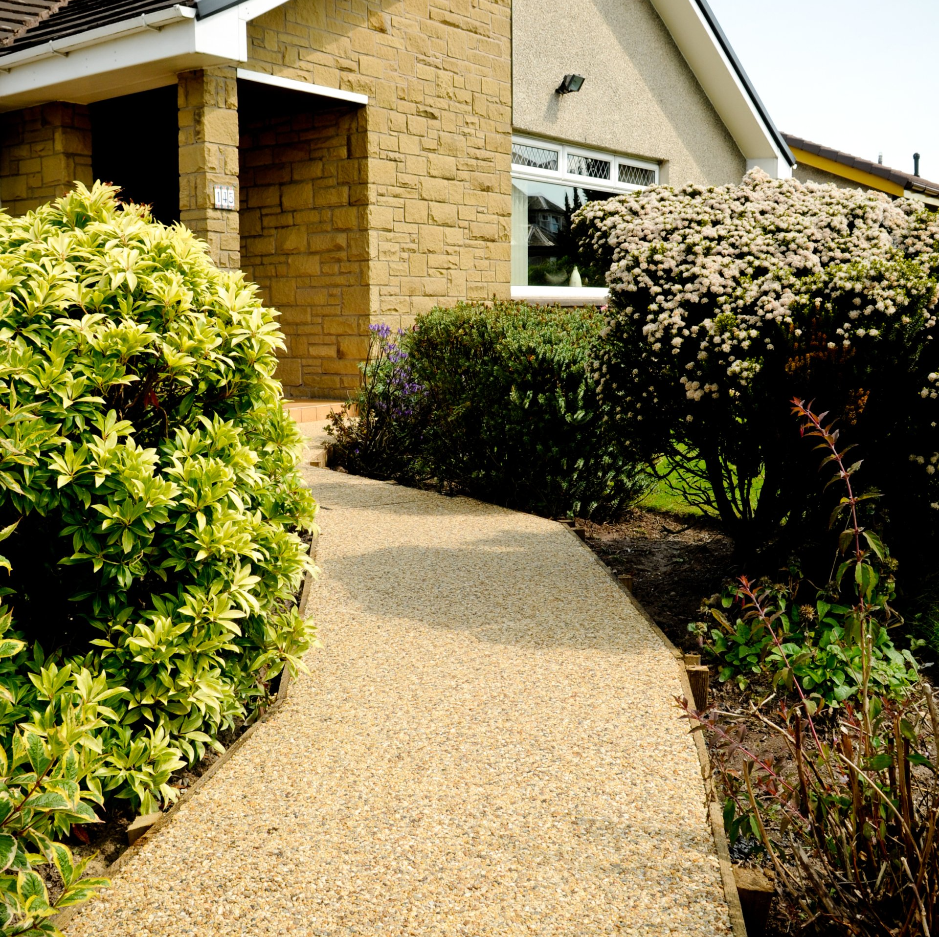- Resin Bound Stone Driveways made of small stones.